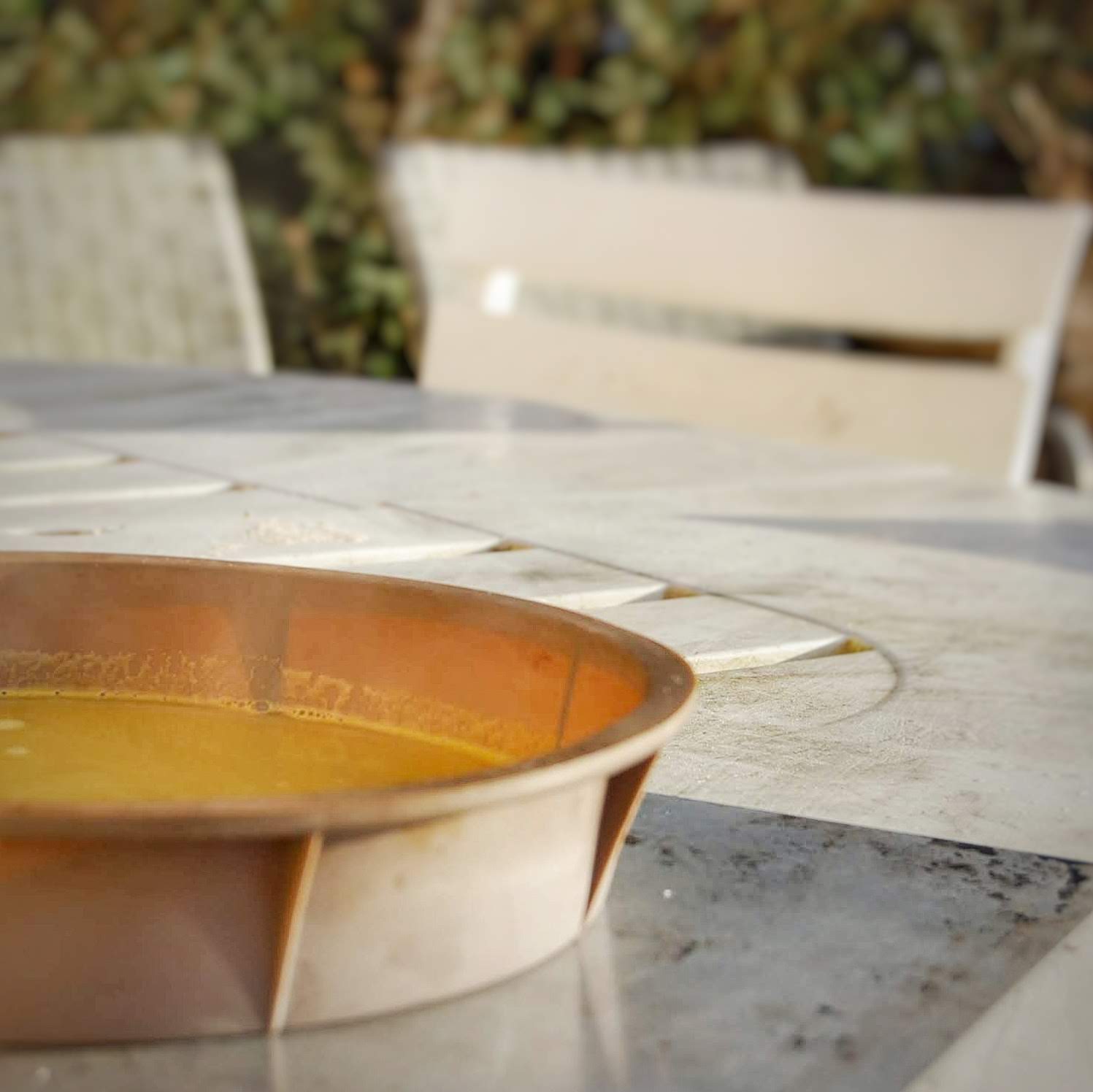 4/ Laissez refroidir un peu le mélange, placez pendant ce temps le cercle de jus de clémentines pris à l'agar au congélateur, pendant une 15aine de minutes.